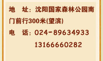 地 址:沈陽(yáng)國(guó)家森林公園南門(mén)前行300米(望濱) 電 話:024-89634933 13166660282  024-24821827